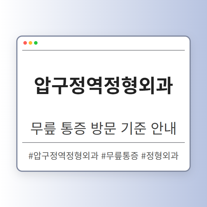 무릎 통증이 지속되면 적절한 진단과 치료가 필요합니다. 압구정역정형외과 방문 기준을 알아보면, 통증의 원인과 치료 방향에 대한 전문적인 정보를 제공받을 수